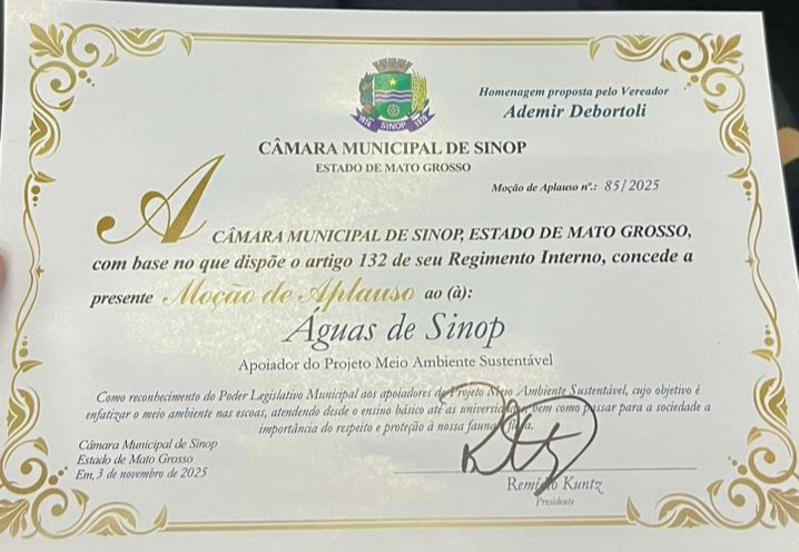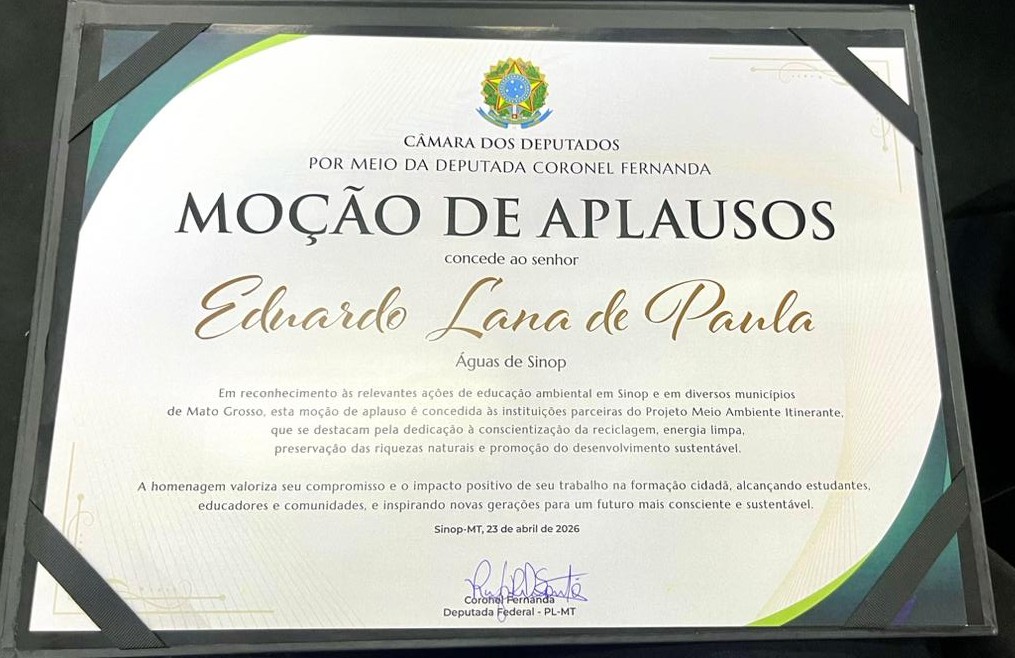 “Receber esse reconhecimento é motivo de orgulho para todos nós. A Águas de Sinop acredita que investir em educação ambiental é essencial para garantir um futuro mais sustentável. Apoiar iniciativas como o Projeto Meio Ambiente Itinerante reforça nosso compromisso com a comunidade e com a preservação dos recursos naturais”, destacou Eduardo Lana, diretor-presidente da Águas de Sinop.
