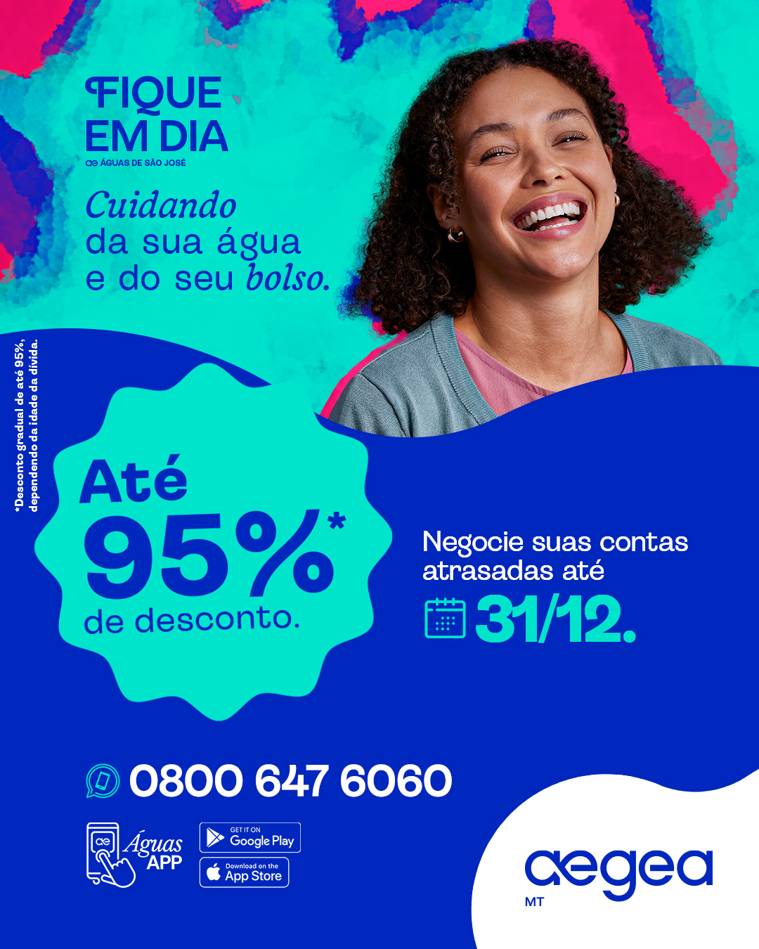 Consumidores com contas de água em atraso têm uma excelente oportunidade para regularizar débitos com condições especiais. As concessionárias da Aegea em 12 cidades de Mato Grosso realizam a campanha “Fique em Dia”, que segue até 31 de dezembro, oferecendo descontos de até 95% no valor total das dívidas, além de parcelamentos em até 60 vezes, sem juros ou multas por atraso.