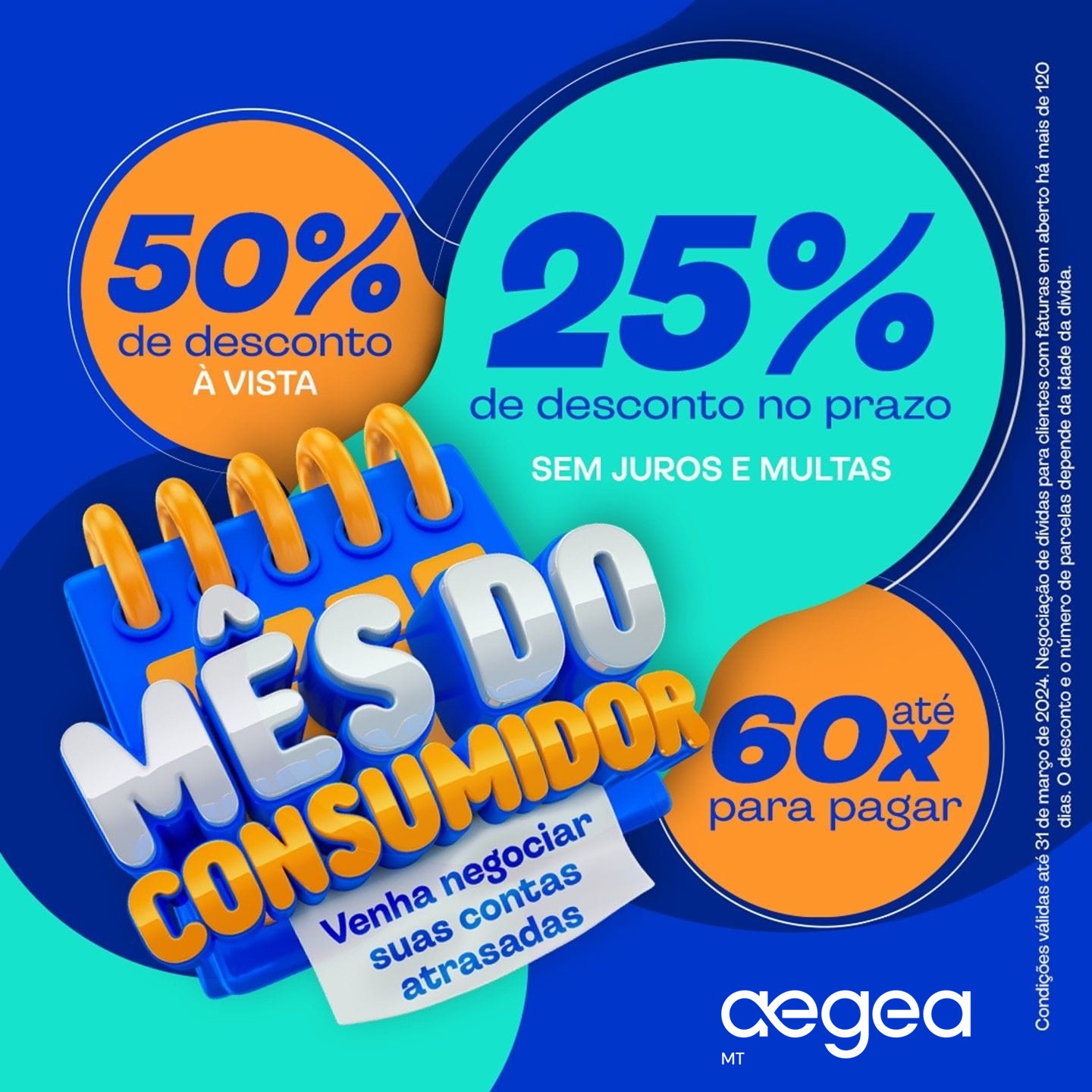 Os consumidores com pendências nas contas de água e esgoto terão a oportunidade de negociar os débitos com parcelamentos, sem juros e multas por atraso e com a possibilidade de desconto no valor dependendo do tempo da dívida. Essas condições especiais de negociação estão sendo ofertadas pela Aegea MT, empresa responsável pela gestão de 24 concessões de água e esgoto no estado de Mato Grosso, na campanha do Mês do Consumidor, celebrado em 15 de março.