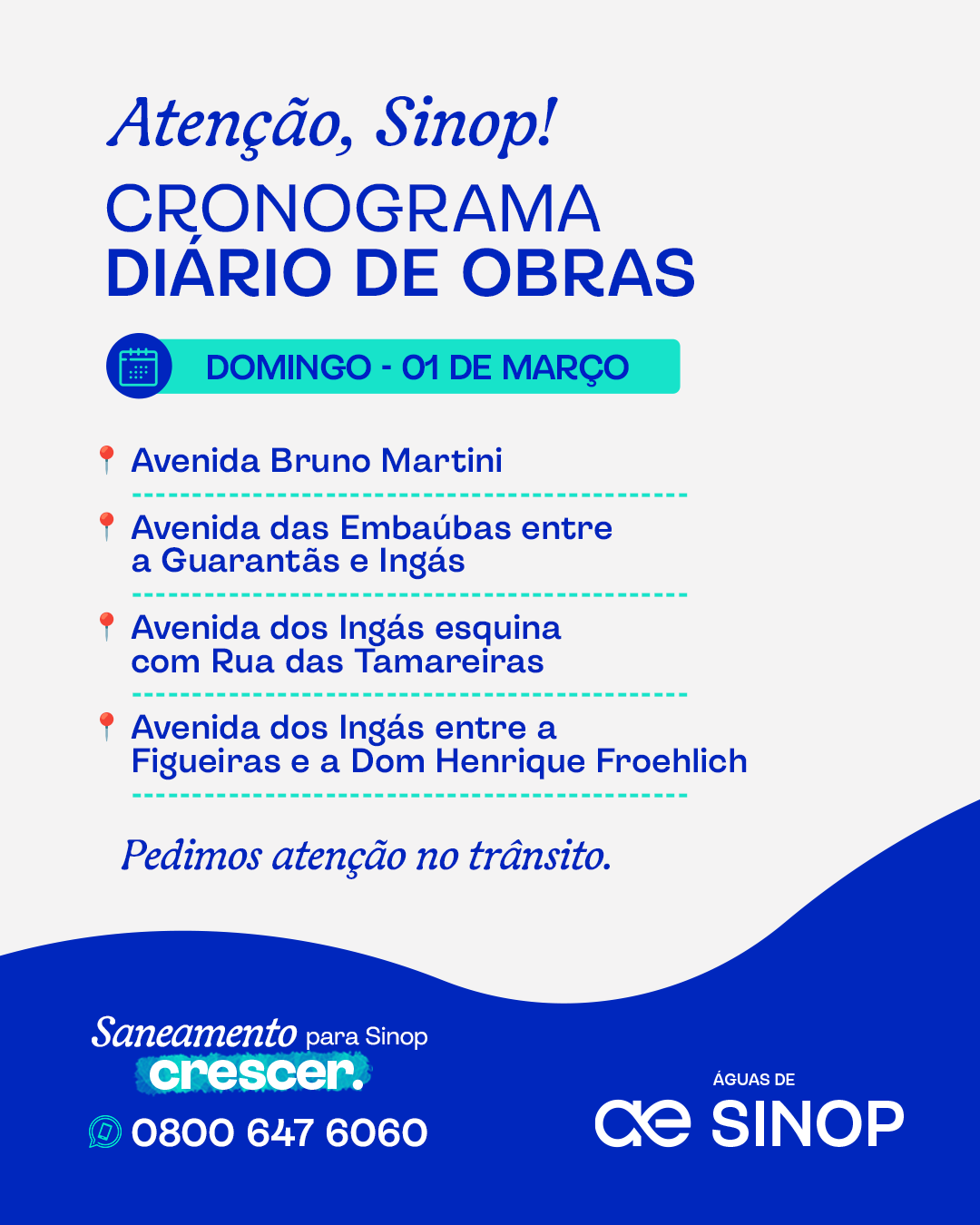 Pedimos atenção ao circular pelas regiões e agradecemos a compreensão dos moradores durante os trabalhos.