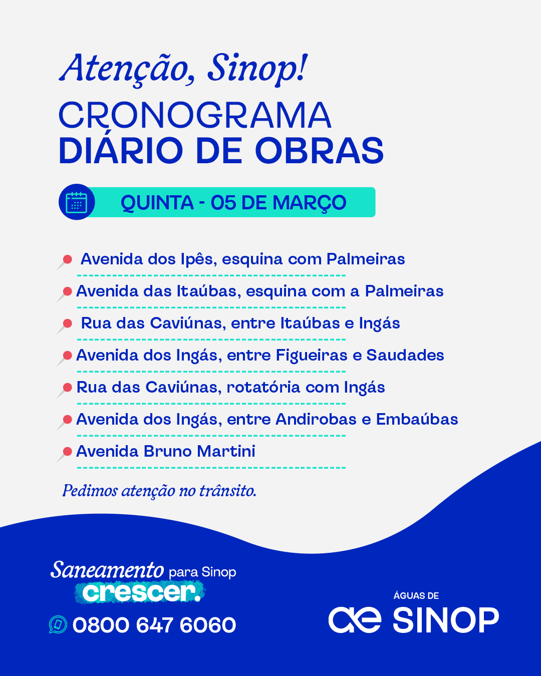 Pedimos atenção ao circular pelas regiões e agradecemos a compreensão dos moradores durante os trabalhos. 🚧