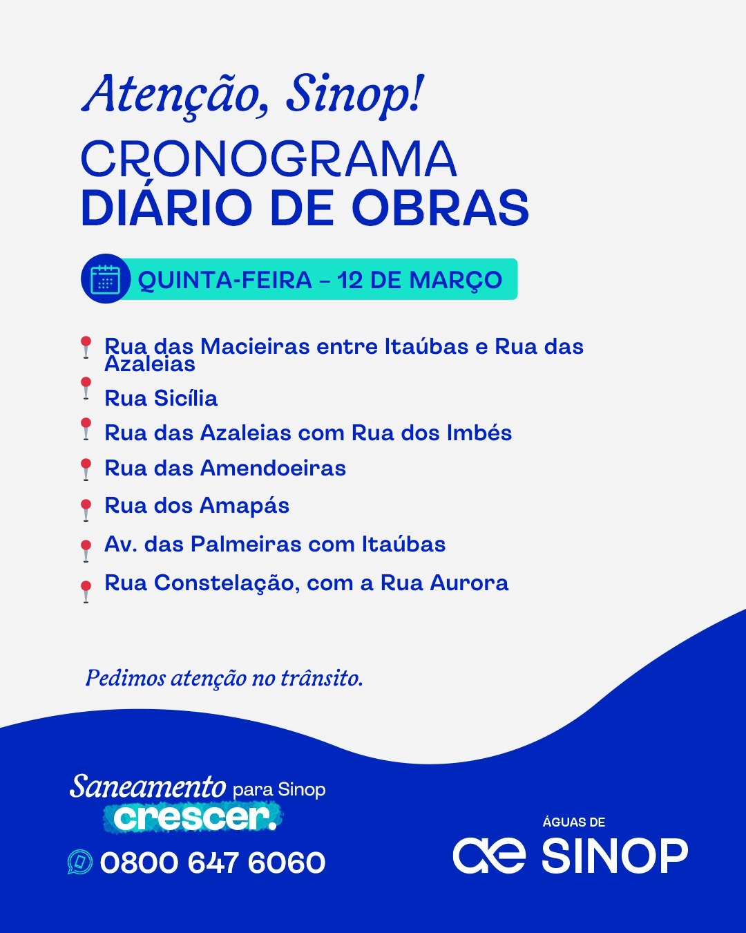 Pedimos atenção ao circular pelas regiões e agradecemos a compreensão dos moradores durante os trabalhos. 🚧